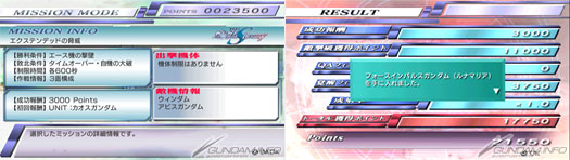 雖然「任務模式」最初只能使用限定的機體,完成任務後便可以獲得關連的MS與地圖(連線對戰用)。