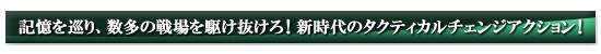 高達回憶錄 ~歷戰回憶~ 發售日: 2011年6月23日 硬體: PSP®「Play Station Portable」 價格: 6,279日圓(含稅)/DL版 6,270日圓(含稅) 玩家人數: 1人(連線對戰2~4人) 類型 : 戰略切換動作 CERO : A(全年齡) 被深深刻畫在高達們身上那歷戰的回憶。 自在的切換驅使3台MS,在戰場上奔馳吧! |