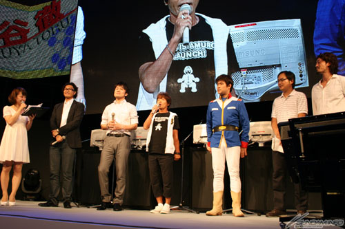 著手開發各遊戲的製作人們登台後,特別來賓的高達藝人土田晃之、模仿阿姆羅的藝人若井修、以及大家所熟悉飾演阿姆羅・雷的聲優-古谷徹登場。