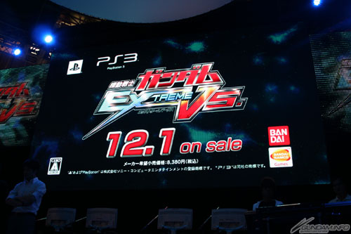 首先介紹的遊戲是預計於12月1日發售的PS3「機動戰士高達 EXTREME VS.」。於大型機台上充滿人氣的「高達VS.」系列最新作品,即將在家用遊戲機上登場相當受人注目。