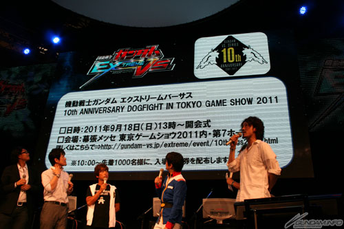 最後發表了將在「東京電玩展2011」的最後一天,9月18日於幕張MESSE第7大廳的特別舞台上舉行大型機台版「EXTREME VS.」的官方大賽「機動戰士高達 EXTREME VS. 10th ANNIVERSARY DOGFIGHT IN TOKYO GAME SHOW 2011」。