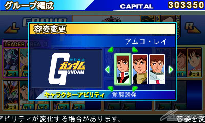 「阿姆羅」和「馬沙」等部分擁有複數容貌的角色,可透過「容貌變更」變換為喜歡的容貌。阿姆羅則可選擇『高達』、『Ζ高達』、『逆襲的馬沙』中登場的容貌。