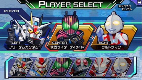 BANDAI NAMCO GAMES推出的集結「假面騎士」、「超人力霸王」、「高達」各系列角色夢幻共演的大人氣系列『共演英雄』。新作第 1彈的PSP®專用動作遊戲「英雄大戰 全力開火」將在2012年3月1日發售。