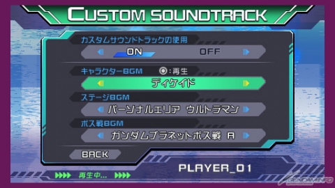 本作裡除了可設定操作角色各自的BGM之外,還收錄了許多關卡BGM。透過設定變更「自訂音樂」就能以自己喜歡的BGM進行遊戲喔。