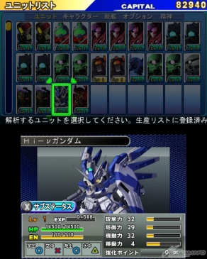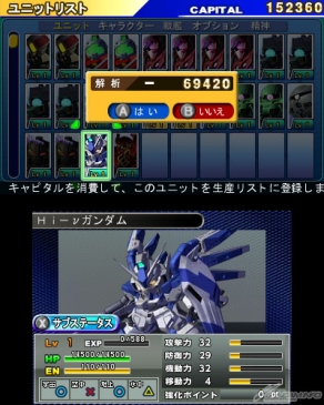 透過解析將捕獲到的機體馬上進行生產登錄的系統。只要花費必要的資金,還未成長至可進行「開發」的機體也能夠製作出來喔。