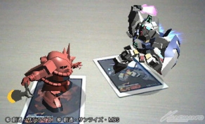 只要使用「讀碼器」讀取「AR卡」,即可欣賞MS的立體圖示,並進行3D圖片攝影!另外,只要捕捉到讀取AR卡後出現的模型,即可獲得該機體並在遊戲中使用喔!