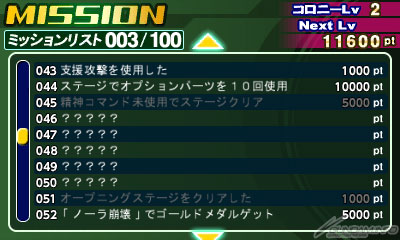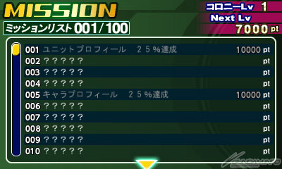 殖民地等級提升後,將可追加特殊MS、操作員變更後也可使用的角色、新型母艦、特殊的追加零件、和追加編隊的編成。