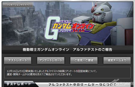 NAMCO BANDAI ONLINE現正開發中的Windows®專用PC網路遊戲「機動戰士高達Online」,去年底進行的「α測試」問卷結果報告於本日起在官方網站公開。
