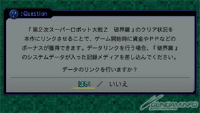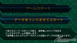※進行資料連結時,不會繼承「破界篇」破關時機體及武器的改造度、駕駛員的等級和撃墜數等。