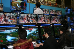 「機動戰士高達EXTREME VS. Full Boost」專區中,為了搶先試玩話題作的眾多玩家排成隊列,由此可見其矚目度之高。