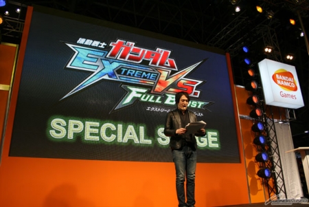 於2 月17日(五)、18日(六)2日間舉行的「AOU2012 AMUSEMENT EXPO」。一般公開日為2月18日,於會場中的NAMCO BANDAI GAMES主舞台舉辦了預計於4月上旬開始營運的「高達VS.」系列最新作「機動戰士高達EXTREME VS. Full Boost」特別舞台活動。