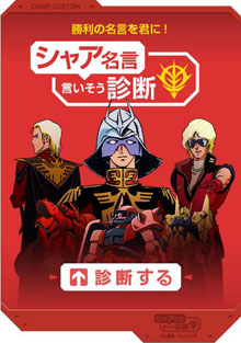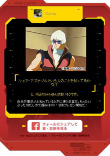 ▲ 以『機動戰士高達』系列的人氣角色馬沙・亞斯洛布的名言,1天1次測驗使用者“似乎要說出來”的話。還有準備本次與GUNDAM PERFECT GAMES連動的「裏・測驗」,讓你能夠繼續測驗心中到底是怎麼個想法。