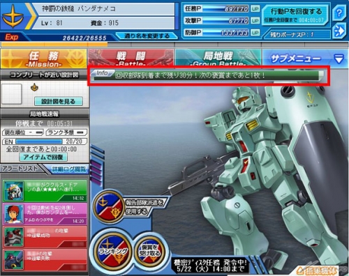 貢獻度點數累積至一定值之後就會收到本部送來,在遊戲中非常有用的道具及機體等「獎賞」。本次公開了部分獎項,馬上為各位介紹吧!