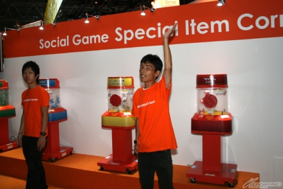 ブースの中では最新タイトルの試遊に加えて、ソーシャルゲームのスペシャルアイテムがゲットできるくじ引きコーナーも。