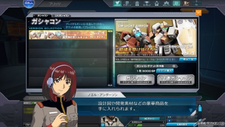 本次追加實裝的「GATCHACON」系統,是只有利用遊戲内貨幣才能夠以一定機率獲得各種各樣的機體設計圖或是租借機體、零件等等遊戲內所需物資的一套系統。