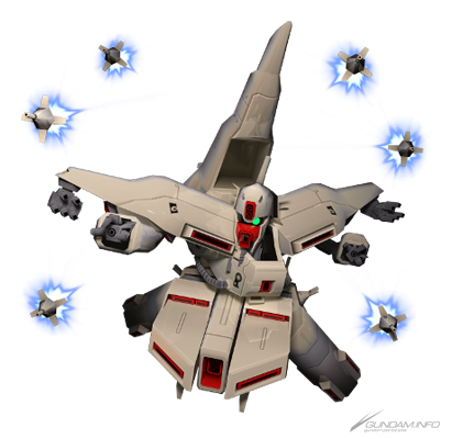 武裝變更後就,具備高追蹤能力的武器2「精神感應飛彈」的射程可以透過技能2「米諾夫斯基揚力器」來延長射程。