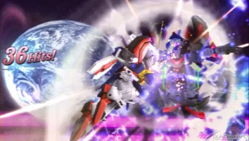 ▲∀高達的遠距離SP CRASH「腹部光束加農」。雖然範圍狹小,但是能把對手吸引過來後發動,就可以有極高的機率準確命中。