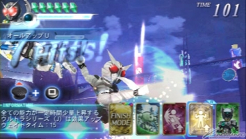 本作有「高達」、「假面騎士」、「超人力霸王」系列中,總共有21名的正反派英雄參戰,展開1VS1爽快、華麗戰鬥的究極劇情性格鬥動作遊戲,「高達」系列中有『機動戰士高達00』中的「00強化模組」與「再生高達」、 『機動武鬥傳G高達』中的「神威高達」與「天王高達」、『∀高達』中的「∀高達」與「Turn-X哥達魯」參戰。