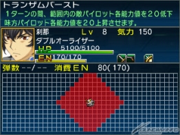 ▲00強化模組的「TRAMS-AM爆發」發動!成功使敵方駕駛員全能力值下降20!