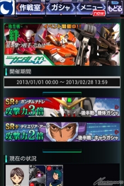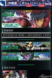 2013年2月第1作,有『機動戰士高達』與『機動戰士Ζ高達』、『機動戰士高達UC』、還有『機動戰士高達SEED』與『機動戰士高達00』參戰中的『GUNDAM KINGDOM』,現正期間限定能讓玩家們品嘗到的……不對,應該要說只有在期間限定才能品嘗到的「活動」在等著大家!!