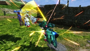 ▲特殊射撃武裝是可以在機體周圍產生綠色的力場,範圍内的機體都會陷入麻痺狀態的「精神壓力」。配合可以當成泛用機來使用的主要射撃以及蓄力射撃,就能毫無空隙地進行攻撃。
