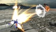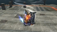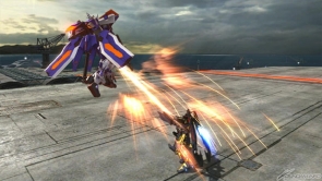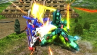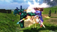 ▲特殊格鬥武裝「熊抱」,可以在熊抱敵機之後選擇「放出精神力後自爆」帶來高度傷害同時也讓自機的耐久度變成0、「踢飛」、 「抓到空中再摔到地上、然後用光束步槍射擊」這幾種衍生攻撃。自爆攻撃可以用在對手大意的時候或是遭到精神壓力攻撃之後發動。
