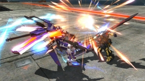 ▲特殊射撃武裝是以「幻象粒子」隱形之後接進敵方。搖桿N為直進,搖桿輸入左 or 右就可以使軌道進行左迴轉或是右迴轉的變化。擊中後搭配可以引發麻痺的次要射撃或是蓄力射撃組合,作為帶入格鬥戰的準備動作來活用吧。