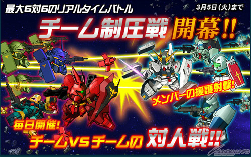 NAMCO BANDAI ONLINE在「Yahoo!遊戲」上提供中的免基本費網頁遊戲「SD GUNDAM OPERATIONS」,2月27日(三)起「小隊壓制戰(本戰)」正式開始。除了期間限定內「羅妮‧加維搭乘的珊布洛」將登場之外,稀有度「★4」的追加等等預定實施許多更新內容。