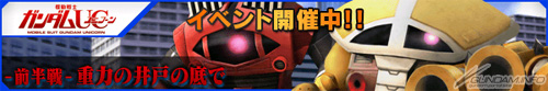 目前已舉辦了『高達』、『Ζ高達』,以及前半・後半二部構成的『高達00』活動,並在獲得許多好評聲浪中結束。而現在,從 2月28日開始公開最新作episode 6, 最火熱的『高達UC』活動正式開跑!