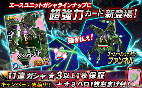 本日起王牌轉蛋機中將新追加以「★3 剎帝利」為首的強力機體。