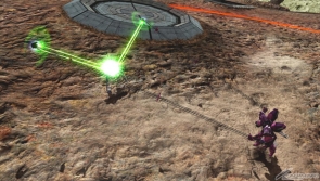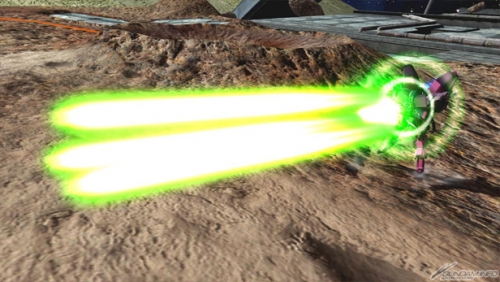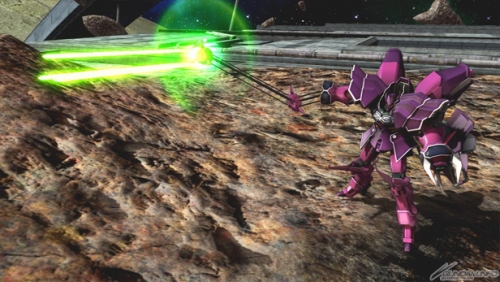 ▲次要射撃武器為射出「INCOM」後由INCOM發射光束。光束發射後只要再次按下射撃按鈕就可以再度進行光束發射。在發射前,再度按下次要射撃按鈕就可以讓INCOM回到手腕上。
