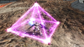 ▲特殊格鬥武裝,以射出薔薇型的感應砲在敵人附近展開力場,一旦敵人接觸到力場就會陷入麻痺的「精神感應干擾力場」。如果打中NT-D狀態的獨角獸高達的話,就和原作同様有強制解除NT-D的效果。