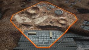 舞台整體由凸凹的斜面與隕石坑構成,雖然射擊線很難直通,但卻成為適合隱藏身形逼近對手作戰的舞台。