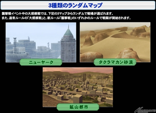 NAMCO BANDAI ONLINE開發、營運中的Windows專用網路遊戲「機動戰士高達ONLINE」將於今天3月27日(三)起,新實裝大規模戦的新規則「襲撃戰」。搭配此新實裝規則,在襲擊戰結束後的報酬道具中會出現各式各樣「機體設計圖」的「襲撃戰任務」同時展開。