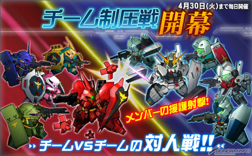 NAMCO BANDAI ONLINE在「Yahoo!遊戲」上提供中的免基本費網頁遊戲「SD GUNDAM OPERATIONS」,將在今天4月24日(三)正午展開實裝新報酬系統的「小隊壓制戰」,而「高達戰鬥競技場」與「獲得PP增量活動」、「11連轉蛋保證★3以上機體一台活動」同時開始。