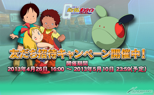 黃金週的連續企劃第5彈「朋友邀請活動」,是可以透過電郵邀請朋友來玩「機動戰士高達ONLINE」,而只要受邀的朋友滿足一定的條件之後,邀請者就可以獲得特典道具喔。