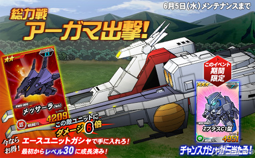 此外,同樣從今天開始到5月29日(三)為止的限定期間內將舉辦「機體強化合成經驗值增加活動」。舉辦期間中,合成機體時所獲得的經驗值會增加,請千萬不要錯過這次的機會。