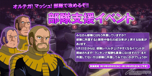 NAMCO BANDAI ONLINE好評營運中的Windows専用網路遊戲「機動戰士高達ONLINE」將在5月22日起開始「部隊支援活動」。
