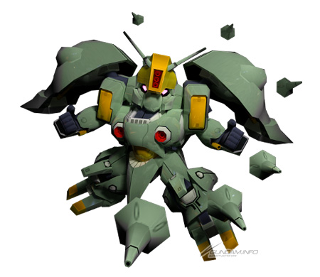 | 【武装(武装変更前)】 武器1:ビーム・サーベル 武器2:バルカン砲 武器3:ファンネル・ミサイル スペシャルアタック:乱舞型 【スキル】 スキル1:底力 スキル2:ミノフスキークラフト(ペーネロぺー) |