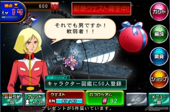 玩家們所熟悉的「設計」與「開發」等等的要素依然健在。還有許多「高達」作品中的人氣MS、角色、戰艦登場,搭配手上的MS以及角色來編成自己的原創部隊。