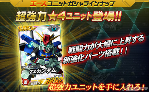 同樣從今天正午開始,在王牌機體轉蛋中追加「★4 ZZ高達」、「★3 杜賓狼」。