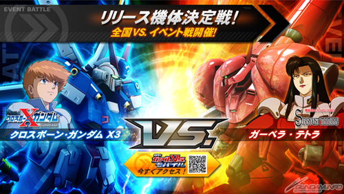 這次要比誰先登場的是「骷髏高達X3」和「加貝拉‧迪特」這2台機體,活動期間內獲得較多GP的勢力機體,將會優先登場。
