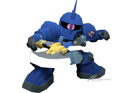 本機在「機動戰士高達 戰略戰術大圖鑑 一年戰爭全紀錄」中登場。速度和敏捷性都很優秀,適合格鬥戰的機體,技能1「突擊指揮」發動後可以提升我方全部機體的攻擊力並增加推進器的使用時間。固有技能的技能2「藍色巨星」不僅可以使防禦力上升,還能增加武器1「電熱斧」、以及武器2「渣古機關槍」的額外傷害。