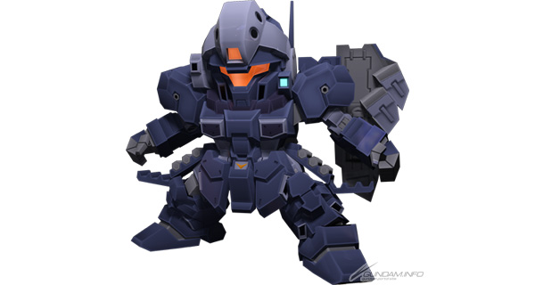 在『機動戰士高達UC』中登場的MS。武器2「手榴彈」是中距離的射擊武器,武裝變更後的武器1是「可裝卸型火神砲系統」、武器2是「光束步槍」,有著豐富的中距離武器,而且技能1「高性能OS」可以縮短裝填時間。技能2「三連星」可增加我方全部機體的攻擊力和推進器使用時間。
