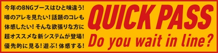 其中之一的特別企劃是「QUICK PASS」,會從在特設網站的專用頁面上申請的人當中,抽出幾位幸運兒贈送QUICK PASS,當天帶著這張通行證到NAMCO BANDAI GAMES的攤位上,就可以優先試玩。我們特別推薦這個企畫給「想在估計十分擁擠的會場上,什麼話題作品都想玩一把!」的人。申請只受理到9月12日(四)12:00為止。