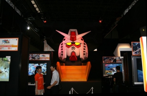 ▲進到攤位,首先映入眼簾的是巨大的高達頭!