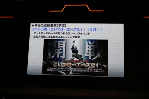 除了介紹各個遊戲以外,「激戰任務」也在活動現場發表了今後預定的追加要素新情報,9月將實施王牌配對規則的排名活動戰「這傢伙是…王牌!」,10月~11月將推出由地上和地下2層構造組成的新地圖、11月以後則預定導入能讓玩家之間組成部隊,和其他部隊對戰的「部隊系統」。