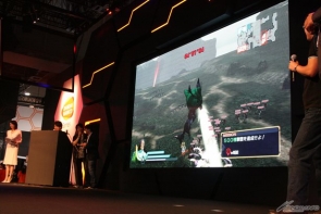 而由來賓試玩的部分,首先由鈴村操縱巨大MA「畢格・薩姆」來試玩。全新的操作感讓鈴村不斷稱讚「這已經超越了原作!動作超輕快的!」。