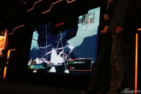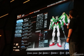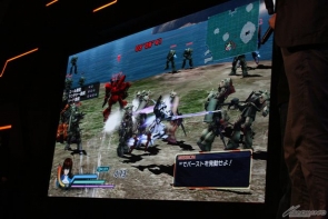 首先在會場上映了「真・高達無雙」充滿魄力的PV,本作的特徵有「Official Mode」和「Ultimate Mode」等等。