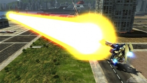 ▲飛行形態時的副射擊是一邊迴避對手的攻擊一邊連續發射光束攻擊。